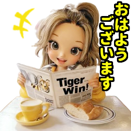 新聞の見出しに「Tiger Win!」。